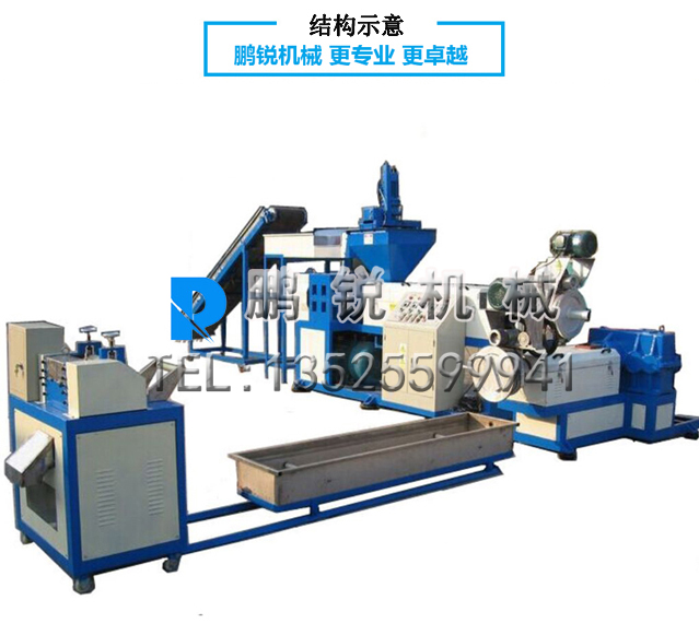 塑料造粒機(jī)設(shè)備的主機(jī)是擠塑機(jī),它由擠壓系統(tǒng)、傳動(dòng)系統(tǒng)和加熱冷卻系統(tǒng)組成。擠塑機(jī)按照機(jī)頭料流方向和螺桿中心線的夾角,將機(jī)頭分成斜角機(jī)頭(夾角120o)和直角機(jī)頭。機(jī)頭的外殼是用螺栓固定在機(jī)身上,機(jī)頭內(nèi)的模具有模芯坐,并用螺帽固定在機(jī)頭進(jìn)線端口,模芯座的前面裝有模芯,模芯及模芯座的中心有孔,用于通過(guò)芯線;在機(jī)頭前部裝有均壓環(huán),用于均衡壓力;擠包成型部分由模套座和模套組成,模套的位置可由螺栓通過(guò)支撐來(lái)調(diào)節(jié),以調(diào)整模套對(duì)模芯的相對(duì)位置,便于調(diào)節(jié)擠包層厚度的均勻性。機(jī)頭外部裝有加熱裝置和測(cè)溫裝置。主要用于加工廢舊塑料薄膜(工業(yè)包裝膜、農(nóng)業(yè)地膜、大棚膜、啤酒包、手提袋等)、編織袋、農(nóng)用方便袋、盆、桶、飲料瓶、家具、日常用品等,適用于大部分常見的廢舊塑料,是廢舊塑料再生行業(yè)用途廣,使用廣泛,受用戶歡迎的塑料再生加工機(jī)械。
